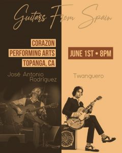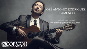 One of Spain’s leading flamenco guitarists, Córdoba’s award-winning José Antonio Rodríguez. A remarkable guitarist acclaimed for his powerful and evocative renditions of contemporary flamenco. He has composed music for orchestras and dance companies, participated in major projects with Paco de Lucía and Alejandro Sanz, and appeared in Carlos Saura’s Flamenco. His most recent album “El Guitarrista Azul” is a magnificent collection of beautiful pieces written for guitar and orchestra inspired by Picasso’s blue period. It is available now on all digital platforms.